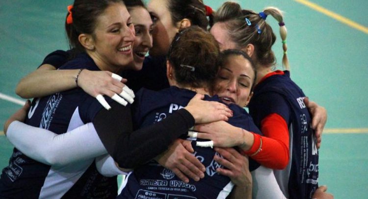 Il quarto set inizia male per Rania e compagne. Sul 3-7 Jimenez suona la sveglia. Ci si ferma sul 3-8. Reagiscono rabbiosamente le santateresine che prima raggiungono il pari sul 10-10 e poi allungano sul 16-14. Dietro non cade più nulla a terra, in avanti Bertiglia semina scompiglio nella difesa avversaria. Non sono da meno bomber Panucci e capitan Rania. Ambra Composto comincia ad inanellare fast in serie mentre Silvia Bilardi risponde con alcuni affrondi chirugici. Dietro Federica Pietrangeli prende tutto quello che c’è da prendere mentre in regia Giulia Agostinetto impartisce lezioni di distribuzione di gioco con aperture favolose e cambi di gioco da cineteca. Si chiude sul 25-20 ed il 3-1 finale una gara i cui punti in palio valgono doppio. Adesso un intero comprensorio, ancora più coinvolto, comincia a vedere sempre più reale e realizzabile un sogno che sembrava una chimera.
