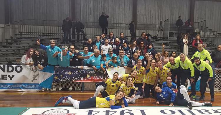 Va segnalato il clima natalizio sugli spalti, con gli Eagles che hanno inserito nel repertorio cori tipici del periodo, in un tripudio di bandiere a battimani, concluso con il rituale di fine partita ed una foto ricordo di questa lunga trasferta. Il 2018 è archiviato. Si riprenderà il 5 gennaio in casa con Termini Imerese, squadra di tutto rispetto, che oggi è stata vicina a sfiorare l’impresa con Aragona, vincendo un set e perdendone un altro ai vantaggi.
