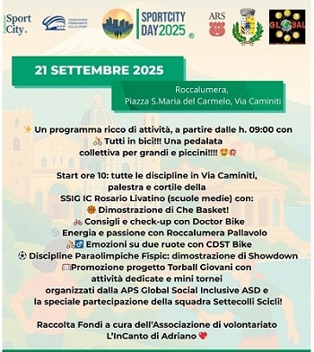 Lo SportCity Day 2025 di Roccalumera è promosso dall’Aps Global Social Inclusive Asd, in collaborazione con il Comune di Roccalumera, e con il supporto di numerose realtà locali.