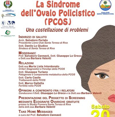 Un importante convegno dedicato alla sindrome dell’ovaio policistico si terrà sabato 20 settembre, a partire dalle ore 16, presso il Palazzo della Cultura di Santa Teresa di Riva.