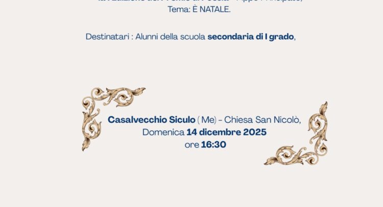 Cresce l’attesa a Casalvecchio Siculo per la cerimonia di premiazione del Premio di Poesia Pippo Principato, in programma il 14 dicembre 2025. L’iniziativa, promossa dall’Associazione Milano Sport Project con il supporto delle realtà culturali locali e il patrocinio dell’Arcipretura e del Comune, ha già fatto registrare un’ampia adesione da parte degli istituti scolastici.