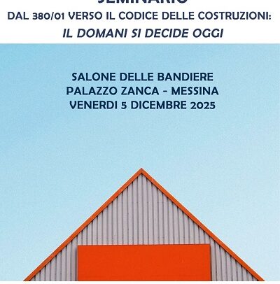 Con il Seminario “Dal 380/01 verso il Codice delle Costruzioni: il domani si decide oggi”, l’Ordine degli Architetti PPC della provincia di Messina, non pensando minimamente di sostituirsi a chi ha la responsabilità, per ruolo, di governare tali processi, desidera solo fornire un momento di necessario confronto tra istituzioni e fornire contributi che provengono da chi, tecnici che operano da entrambe le parti della “scrivania”, giornalmente si trovano a doversi districare tra norme e procedure spesso più che farraginose.
