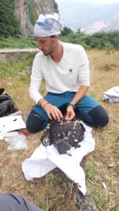 La delicata fase dell’apposizione del tag da parte dei tecnici ISPRA con la collaborazione dell’Associazione ambiente Sicilia