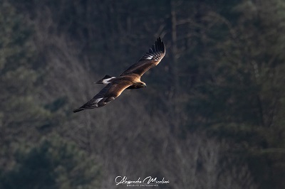 Giovane di Aquila reale, con il tipico piumaggio con evidenti aree bianche su ali e coda. Foto Alessandro Micalizzi