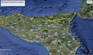 Durante le ultime settimane la giovane Aquila ha attraversato numerosi territori di altre Aquile reali, visitando le aree del Parco dell’Etna e delle Madonie, percorrendo così quasi di 2400 chilometri.